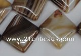 Details: 15.5 inches strand of 18*25mm faceted oval violet line agate gemstone beads wholesale Item: CAA358 Material: violet line agate Shape: faceted oval Color: See image Size (mm): approx 18*25mm Length (inch): approx 15.5" per strand Quantity: approx 16 beads per strand Quantity Discount Pricing: 1 – 4: None 5 – 49: 95% 50 – 99: 90% 100+: 85% The listed price is for one strand beads |