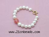 Details: Fashion pearl bracelet: 9mm - 10mm potato white freshwater pearls & 12mm round cherry quartz beaded bracelet finished with copper spring ring clasp (Style No.4) Item: CFB1055 Material: 9-10mm potato white freshwater pearls 12mm round cherry quartz beads 2*5mm copper spacers (No.4) Color: See image Style: No.1-No.3: Stretchy No.4-No.6: Hand-knotted (you can choose different style, spacer & clasp. if you like other style, clasp, spacer or other quality/size potato white freshwater pearls we don't show, please contact us before you placing order) Length (inch): Approx 7.5 inch (Default) You can choose 6.5”; 7”; 7.5”; 8”; 8.5”; 9” or 9.5” Quantity Discount Pricing: 1 - 4: None 5 - 49: 95% 50 - 99: 90% 100+: 85% The listed ppotato is for 1 piece 6.5 inch style No.1 bracelet; the picture shows style No.4 Custom orders are available upon request! The picture is for reference only, there will be tiny different in shape, color or quality for some products from different date code. we will send your orders randomly according to our stock