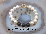 Details: Fashion pearl bracelet: 9mm - 10mm potato white freshwater pearls & 10mm round black lava beaded bracelet finished with copper spring ring clasp (Style No.5) Item: CFB1080 Material: 9-10mm potato white freshwater pearls 10mm round black lava beads 2*5mm copper spacers (No.4) Color: See image Style: No.1-No.3: Stretchy No.4-No.6: Hand-knotted (you can choose different style, spacer & clasp. if you like other style, clasp, spacer or other quality/size potato white freshwater pearls we don't show, please contact us before you placing order) Length (inch): Approx 7.5 inch (Default) You can choose 6.5”; 7”; 7.5”; 8”; 8.5”; 9” or 9.5” Quantity Discount Pricing: 1 - 4: None 5 - 49: 95% 50 - 99: 90% 100+: 85% The listed ppotato is for 1 piece 6.5 inch style No.1 bracelet; the picture shows style No.5 Custom orders are available upon request! The picture is for reference only, there will be tiny different in shape, color or quality for some products from different date code. we will send your orders randomly according to our stock