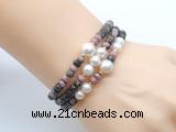 Details: Fashion gemstone & pearl bracelet: 4*6mm faceted rondelle rhodonite, 7-8mm & 10-11mm potato white freshwater pearl stretchy bracelet jewelry Item: CFB765 Material: 4*6mm faceted rondelle rhodonite 7-8mm & 10-11mm potato white freshwater pearls 1.5*4mm copper spacers (you can choose different spacer) Color: See image Length (inch): Approx 7.5 inch (Default) You can choose 6.5”; 7”; 8”; 8.5”; 9” or 9.5” Quantity Discount Pricing: 1 – 4: None 5 – 49: 95% 50 – 99: 90% 100+: 85% The listed price is for 1 piece 7.5 inch bracelet If you also like similar necklace, please order item CFN216 Custom orders are available upon request! The picture is for reference only, there will be tiny different in shape, color or quality for some products from different date code. we will send your orders randomly according to our stock