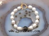Details: Fashion pearl bracelet: 9mm - 10mm rice white freshwater pearls & 12mm round smoky quartz beaded bracelet finished with copper OT clasp (Style No.4) Item: CFB937 Material: 9-10mm rice white freshwater pearls 12mm round smoky quartz beads 1.5*4mm copper spacers (No.2) Color: See image Style: No.1-No.3: Stretchy No.4-No.6: Hand-knotted (you can choose different style, spacer & clasp. if you like other style, clasp, spacer or other quality/size rice white freshwater pearls we don't show, please contact us before you placing order) Length (inch): Approx 7.5 inch (Default) You can choose 6.5”; 7”; 7.5”; 8”; 8.5”; 9” or 9.5” Quantity Discount Pricing: 1 - 4: None 5 - 49: 95% 50 - 99: 90% 100+: 85% The listed price is for 1 piece 6.5 inch style No.1 bracelet; the picture shows style No.4 Custom orders are available upon request! The picture is for reference only, there will be tiny different in shape, color or quality for some products from different date code. we will send your orders randomly according to our stock