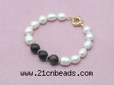 Details: Fashion pearl bracelet: 9mm - 10mm rice white freshwater pearls & 10mm round golden obsidian beaded bracelet finished with copper spring ring clasp (Style No.5) Item: CFB958 Material: 9-10mm rice white freshwater pearls 10mm round golden obsidian beads 2*5mm copper spacers (No.4) Color: See image Style: No.1-No.3: Stretchy No.4-No.6: Hand-knotted (you can choose different style, spacer & clasp. if you like other style, clasp, spacer or other quality/size rice white freshwater pearls we don't show, please contact us before you placing order) Length (inch): Approx 7.5 inch (Default) You can choose 6.5”; 7”; 7.5”; 8”; 8.5”; 9” or 9.5” Quantity Discount Pricing: 1 - 4: None 5 - 49: 95% 50 - 99: 90% 100+: 85% The listed price is for 1 piece 6.5 inch style No.1 bracelet; the picture shows style No.5 Custom orders are available upon request! The picture is for reference only, there will be tiny different in shape, color or quality for some products from different date code. we will send your orders randomly according to our stock
