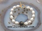 Details: Fashion pearl bracelet: 9mm - 10mm rice white freshwater pearls & 12mm round golden obsidian beaded bracelet finished with copper OT clasp (Style No.4) Item: CFB966 Material: 9-10mm rice white freshwater pearls 12mm round golden obsidian beads 1.5*4mm copper spacers (No.2) Color: See image Style: No.1-No.3: Stretchy No.4-No.6: Hand-knotted (you can choose different style, spacer & clasp. if you like other style, clasp, spacer or other quality/size rice white freshwater pearls we don't show, please contact us before you placing order) Length (inch): Approx 7.5 inch (Default) You can choose 6.5”; 7”; 7.5”; 8”; 8.5”; 9” or 9.5” Quantity Discount Pricing: 1 - 4: None 5 - 49: 95% 50 - 99: 90% 100+: 85% The listed price is for 1 piece 6.5 inch style No.1 bracelet; the picture shows style No.4 Custom orders are available upon request! The picture is for reference only, there will be tiny different in shape, color or quality for some products from different date code. we will send your orders randomly according to our stock