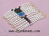 Details: Fashion pearl bracelet: 9mm - 10mm rice white freshwater pearls & 10mm round grass agate beaded bracelet finished with copper OT clasp (Style No.5) Item: CFB973 Material: 9-10mm rice white freshwater pearls 10mm round grass agate beads 1.5*4mm copper spacers (No.2) Color: See image Style: No.1-No.3: Stretchy No.4-No.6: Hand-knotted (you can choose different style, spacer & clasp. if you like other style, clasp, spacer or other quality/size rice white freshwater pearls we don't show, please contact us before you placing order) Length (inch): Approx 7.5 inch (Default) You can choose 6.5”; 7”; 7.5”; 8”; 8.5”; 9” or 9.5” Quantity Discount Pricing: 1 - 4: None 5 - 49: 95% 50 - 99: 90% 100+: 85% The listed price is for 1 piece 6.5 inch style No.1 bracelet; the picture shows style No.5 Custom orders are available upon request! The picture is for reference only, there will be tiny different in shape, color or quality for some products from different date code. we will send your orders randomly according to our stock