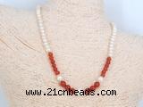 Details: Fashion pearl necklace: 5mm - 6mm potato white freshwater pearls & red agate beaded necklace finished with copper lobster clasp Item: CFN108 Material: 5-6mm, 8-9mm & 10-11mm potato white freshwater pearls 6mm & 8mm round red agate 1.5*4mm copper spacers Copper lobster clasp(#3) (you can choose different spacer & clasp, if you like sterling silver clasp or other clasp we don't show, please contact us before you placing order) Color: See image Style: No.1: Non-knotted (Default) No.2: Hand-knotted Length (inch): Approx 16 inch (Default, Include the clasp, but not including Tail Chain) You can choose 17”; 18”; 19”; 20”; 22” or 24” Quantity Discount Pricing: 1 – 4: None 5 – 49: 95% 50 – 99: 90% 100+: 85% The listed price is for 1 piece Non-knotted 16 inch necklace Custom orders are available upon request! The picture is for reference only, there will be tiny different in shape, color or quality for some products from different date code. we will send your orders randomly according to our stock