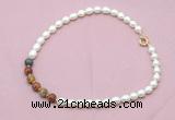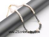 Details: Fashion pearl necklace: 5mm - 6mm potato white freshwater pearls & labradorite beaded necklace finished with copper lobster clasp Item: CFN119 Material: 5-6mm, 8-9mm & 10-11mm potato white freshwater pearls 6mm & 8mm round labradorite 1.5*4mm copper spacers Copper lobster clasp(#3) (you can choose different spacer & clasp, if you like sterling silver clasp or other clasp we don't show, please contact us before you placing order) Color: See image Style: No.1: Non-knotted (Default) No.2: Hand-knotted Length (inch): Approx 16 inch (Default, Include the clasp, but not including Tail Chain) You can choose 17”; 18”; 19”; 20”; 22” or 24” Quantity Discount Pricing: 1 – 4: None 5 – 49: 95% 50 – 99: 90% 100+: 85% The listed price is for 1 piece Non-knotted 16 inch necklace Custom orders are available upon request! The picture is for reference only, there will be tiny different in shape, color or quality for some products from different date code. we will send your orders randomly according to our stock