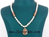 Details: Fashion pearl necklace: 7mm - 8mm baroque white freshwater pearls & moonstone beaded necklace with moonstone pendant, finished with copper spring ring shape clasp Item: CFN152 Material: 7-8mm baroque white freshwater pearls 8mm round moonstone Moonstone pendant 1.5*4mm copper spacers Copper spring ring clasp(#7) (you can choose different spacer, pendant & clasp, if you like sterling silver clasp or other clasp we don't show, please contact us before you placing order) Color/Number See image Style: No.1: Non-knotted (Default) No.2: Hand-knotted Length (inch): Approx 16 inch (Default, include the clasp) You can choose 17”; 18”; 19”; 20”; 22” or 24” Quantity Discount Pricing: 1 – 4: None 5 – 49: 95% 50 – 99: 90% 100+: 85% The listed price is for 1 piece #1 Non-knotted 16 inch necklace Custom orders are available upon request! The picture is for reference only, there will be tiny different in shape, color or quality for some products from different date code. we will send your orders randomly according to our stock
