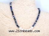 Details: Fashion gemstone & pearl jewelry: 4*6mm faceted rondelle sodalite & potato white freshwater pearl necklace finished with copper lobster clasp Item: CFN221 Material: Style #1: 7-8mm & 10-11mm potato white freshwater pearls Style #2: 10-11mm potato white freshwater pearls 4*6mm faceted rondelle sodalite 1.5*4mm copper spacers Copper lobster clasp(#1) (you can choose different spacer & clasp, if you like sterling silver clasp or other clasp we don't show, please contact us before you placing order) Color: See image Length (inch): Approx 17 inch (Default, Include the clasp, but not including Tail Chain) You can choose 18”; 19”; 20”; 22” or 24” Quantity Discount Pricing: 1 – 4: None 5 – 49: 95% 50 – 99: 90% 100+: 85% The listed price is for 1 piece Style #1 17 inch necklace Custom orders are available upon request! The picture is for reference only, there will be tiny different in shape, color or quality for some products from different date code. we will send your orders randomly according to our stock
