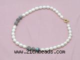 Details: Fashion pearl necklace: 16 - 24 inches 9mm - 10mm rice white freshwater pearls & labradorite beaded necklace finished with copper spring ring clasp Item: CFN317 Material: 9-10mm rice white freshwater pearls 10mm round labradorite beads 1.5*4mm copper spacers (No.2) 11mm copper spring ring clasp (you can choose different spacer & clasp, if you like sterling silver clasp, other clasp or better quality rice white freshwater pearls we don't show, please contact us before you placing order) Color: See image Style: No.1: Non-knotted (Default) No.2: Hand-knotted Length (inch): Approx 16 inch (16-17”, Default) You can choose 17”(17-18”); 18”(18-19”); 19”(19-20”); 20”(20-21”); 22”(22-23”) or 24”(24-25”) Quantity Discount Pricing: 1 – 4: None 5 – 49: 95% 50 – 99: 90% 100+: 85% The listed price is for 1 piece Style #1(Non-knotted) 16 inch necklace; The picture shows 17 inch necklace Custom orders are available upon request! The picture is for reference only, there will be tiny different in shape, color or quality for some products from different date code. we will send your orders randomly according to our stock