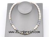 Details: Fashion pearl necklace: 16 - 24 inches 9mm - 10mm potato white freshwater pearls & grey banded agate beaded necklace finished with copper spring ring clasp Item: CFN521 Material: 9-10mm potato white freshwater pearls 10mm & 12mm round grey banded agate beads 2*5mm copper spacers (No.4) 11mm copper spring ring clasp (you can choose different spacer & clasp, if you like sterling silver clasp, other clasp or better quality potato white freshwater pearls we don't show, please contact us before you placing order) Color: See image Style: No.1: Non-knotted (Default) No.2: Hand-knotted Length (inch): Approx 16 inch (16-17”, Default) You can choose 17”(17-18”); 18”(18-19”); 19”(19-20”); 20”(20-21”); 22”(22-23”) or 24”(24-25”) Quantity Discount Pricing: 1 - 4: None 5 - 49: 95% 50 - 99: 90% 100+: 85% The listed price is for 1 piece Style #1(Non-knotted) 16 inch necklace; The picture shows 19 inch necklace Custom orders are available upon request! The picture is for reference only, there will be tiny different in shape, color or quality for some products from different date code. we will send your orders randomly according to our stock