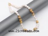 Details: Fashion pearl necklace: 16 - 24 inches 9mm - 10mm potato white freshwater pearls & golden tiger eye beaded necklace finished with copper spring ring clasp Item: CFN526 Material: 9-10mm potato white freshwater pearls 10mm & 12mm round golden tiger eye beads 2*5mm copper spacers (No.4) 11mm copper spring ring clasp (you can choose different spacer & clasp, if you like sterling silver clasp, other clasp or better quality potato white freshwater pearls we don't show, please contact us before you placing order) Color: See image Style: No.1: Non-knotted (Default) No.2: Hand-knotted Length (inch): Approx 16 inch (16-17”, Default) You can choose 17”(17-18”); 18”(18-19”); 19”(19-20”); 20”(20-21”); 22”(22-23”) or 24”(24-25”) Quantity Discount Pricing: 1 - 4: None 5 - 49: 95% 50 - 99: 90% 100+: 85% The listed price is for 1 piece Style #1(Non-knotted) 16 inch necklace; The picture shows 19 inch necklace Custom orders are available upon request! The picture is for reference only, there will be tiny different in shape, color or quality for some products from different date code. we will send your orders randomly according to our stock