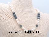 Details: Fashion pearl necklace: 16 - 24 inches 9mm - 10mm potato white freshwater pearls & eagle eye jasper beaded necklace finished with copper spring ring clasp Item: CFN541 Material: 9-10mm potato white freshwater pearls 10mm & 12mm round eagle eye jasper beads 2*5mm copper spacers (No.4) 11mm copper spring ring clasp (you can choose different spacer & clasp, if you like sterling silver clasp, other clasp or better quality potato white freshwater pearls we don't show, please contact us before you placing order) Color: See image Style: No.1: Non-knotted (Default) No.2: Hand-knotted Length (inch): Approx 16 inch (16-17”, Default) You can choose 17”(17-18”); 18”(18-19”); 19”(19-20”); 20”(20-21”); 22”(22-23”) or 24”(24-25”) Quantity Discount Pricing: 1 - 4: None 5 - 49: 95% 50 - 99: 90% 100+: 85% The listed price is for 1 piece Style #1(Non-knotted) 16 inch necklace; The picture shows 19 inch necklace Custom orders are available upon request! The picture is for reference only, there will be tiny different in shape, color or quality for some products from different date code. we will send your orders randomly according to our stock