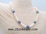 Details: Fashion pearl necklace: 16 - 24 inches 9mm - 10mm potato white freshwater pearls & blue spot stone beaded necklace finished with copper spring ring clasp Item: CFN742 Material: 9-10mm potato white freshwater pearls 10mm/12mm round blue spot stone beads 2*5mm copper spacers (No.4) 11mm copper spring ring clasp (you can choose different spacer & clasp, if you like sterling silver clasp, other clasp or better quality potato white freshwater pearls we don't show, please contact us before you placing order) Color: See image Style: No.1: Non-knotted (Default) No.2: Hand-knotted Length (inch): Approx 16 inch (16-17”, Default) You can choose 17”(17-18”); 18”(18-19”); 19”(19-20”); 20”(20-21”); 22”(22-23”) or 24”(24-25”) Quantity Discount Pricing: 1 - 4: None 5 - 49: 95% 50 - 99: 90% 100+: 85% The listed price is for 1 piece 16 inch Non-knotted & Color/Number #1 necklace; The picture shows 17.5 inch Non-knotted & Color/Number #4 necklace Custom orders are available upon request! The picture is for reference only, there will be tiny different in shape, color or quality for some products from different date code. we will send your orders randomly according to our stock