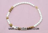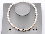 Details: Fashion pearl necklace: 16 - 24 inches 9mm - 10mm potato white freshwater pearls & white fossil jasper beaded necklace finished with copper spring ring clasp Item: CFN753 Material: 9-10mm potato white freshwater pearls 10/12mmmm round white fossil jasper beads 2*5mm copper spacers (No.4) 11mm copper spring ring clasp (you can choose different spacer & clasp, if you like sterling silver clasp, other clasp or better quality potato white freshwater pearls we don't show, please contact us before you placing order) Color: See image Style: No.1: Non-knotted (Default) No.2: Hand-knotted Length (inch): Approx 16 inch (16-17”, Default) You can choose 17”(17-18”); 18”(18-19”); 19”(19-20”); 20”(20-21”); 22”(22-23”) or 24”(24-25”) Quantity Discount Pricing: 1 - 4: None 5 - 49: 95% 50 - 99: 90% 100+: 85% The listed price is for 1 piece 16 inch Non-knotted & Color/Number #1 necklace; The picture shows 17.5 inch Non-knotted & Color/Number #5 necklace Custom orders are available upon request! The picture is for reference only, there will be tiny different in shape, color or quality for some products from different date code. we will send your orders randomly according to our stock
