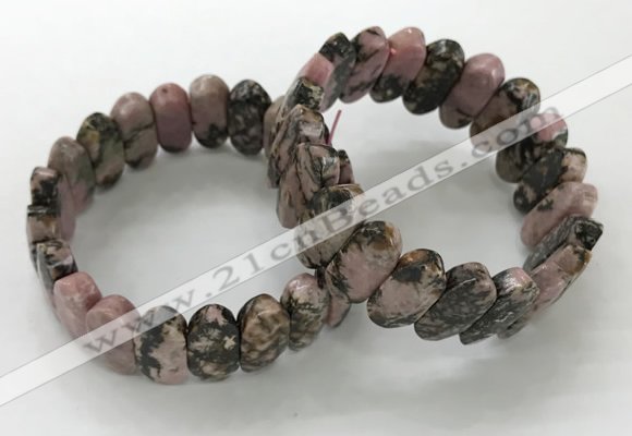 7.5 inches of 10*20mm faceted oval rhodonite gemstone stretchy bracelet jewelry wholesale