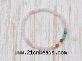 Details: 7 chakra beaded mala bracelet: 4mm round morganite & 7 chakra gemstone beaded healing power stretch bracelet wholesale (you can choose different spacer, if you don’t need the spacer, please choose No) Item: CGB7094 Material: morganite, 7 chakra beads & alloy spacer Color: See image Size (mm): 4mm Length (inch): approx 7.5 inches(Default) You can choose 6 inches; 6.5 inches; 7 inches; 8 inches or 8.5 inches Quantity Discount Pricing: 1 – 4: None 5 – 49: 95% 50 – 99: 90% 100+: 85% The listed price is for 1 piece bracelet The color, quality, size & length of the product may vary, we will send your orders randomly according to our stock. We also accept special order. If you have any need, please contact us before you placing order or leave remark.