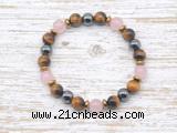 Details: Energy healing bracelet: 8mm round rose quartz, yellow tiger eye, hematite & 3x6mm rondelle hematite power beads bracelet wholesale Item: CGB8504 Material: Round yellow tiger eye, hematite set Round rose quartz (you can choose different beads #1 - #82) Rondelle hematite (you can choose different color/size rondelle hematite) Color: See image Size (mm): 8mm & 3*6mm Length (inch): approx 7.5 inches Quantity Discount Pricing: 1 – 4: No 5 – 49: 95% 50 – 99: 90% 100+: 85% The listed price is for 1 piece bracelet The color, quality, size & length of the product may vary, we will send your orders randomly according to our stock. We also accept special order. If you have any need, please contact us before you placing order or leave remark.