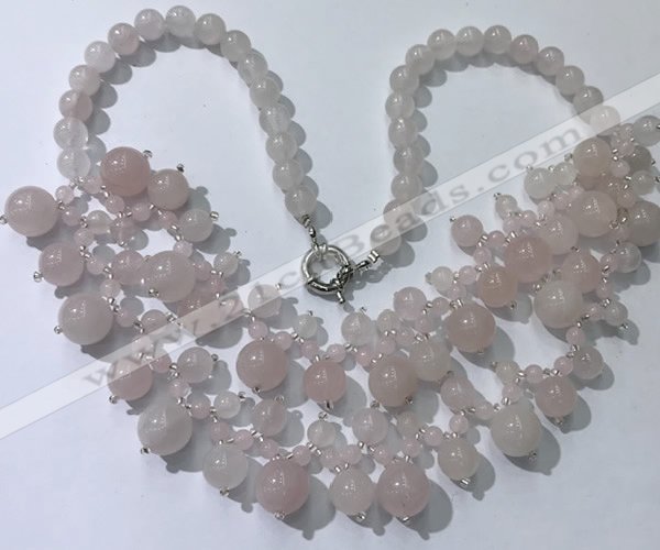 CGN555 19.5 inches stylish 4mm - 12mm rose quartz beaded necklaces