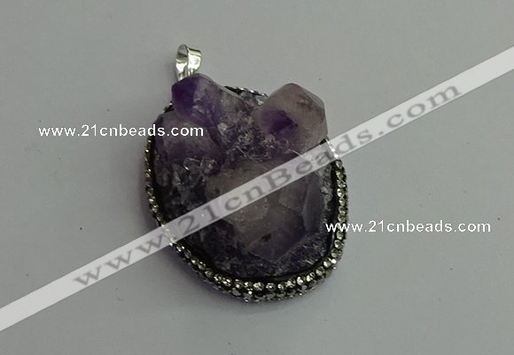 Crystal pendant jewelry: 30*40mm - 35*45mm freeform crystal glass & amethyst with rhinestone brass setting pendants wholesale