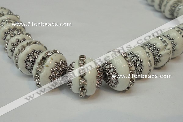 Details: Indonesia Jewelry Beads – 14*16mm rondelle Indonesia beads with rhinestone & brass double core for fashion bracelet or necklace jewelry etc. Item: CIB270 Shape: rondelle Color: See image Size (mm): approx 14*16mm (Hole:2mm) Quantity Discount Pricing: 1 – 4: None 5 – 49: 95% 50 – 99: 90% 100+: 85% The listed price is for one loose Indonesia beads The color & size of the product may vary, we will send your orders randomly according to our stock. |