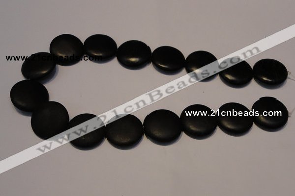 CNE20 15.5 inches 25mm flat round black stone needle beads wholesale