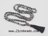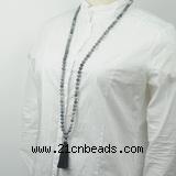 Details: Hand-knotted jasper mala necklaces: 108 8mm/10mm round matte black water jasper beads with 1 12mm guru bead and satin tassel (you can choose different colors) Item: GMN1010 Material: No.1: 108 8mm matte black water jasper beads, 12mm guru bead & satin tassel No.2: 108 10mm matte black water jasper beads, 12mm guru bead & satin tassel Color: See image Length (inch): Necklace length: No.1(8mm: approx 37 - 40 inches (Not including guru bead & tassel) No.2(10mm: approx 46 - 50 inches (Not including guru bead & tassel) Tassel Lenght: 7cm Quantity Discount Pricing: 1 – 4: None 5 – 49: 95% 50 – 99: 90% 100+: 85% This mala is available in both 8mm and 10mm beads, The listed price is for 1 piece 8mm mala necklace Each necklaces is handmade and hand-knotted with different gemstones. Please be aware that each necklace varies in stone pattern and color - Making it a truly one-of-a-kind, unique piece of jewelry. Custom orders are available upon request! If you see different stones you like/want incorporated into a mala necklace or you have any need, please contact us before you placing order or leave remark, and we will be happy to create a mala just for you! Mala necklace is worn on the neck or wrist while not in use. It may also serve as a nice accessory in everyday life or on some special occasions. Whether as a calming meditation guide or a beautiful, this necklace will be a great addition to your spiritual practice.