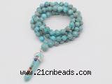 Details: Hand-knotted jasper mala necklaces: 108 8mm/10mm round sea sediment jasper beads with 1 12mm guru bead and turquoise pendant (you can choose different pendants) Item: GMN1450 Material: No.1(8mm: 108 8mm sea sediment jasper beads, 12mm guru bead & turquoise pendant No.2(10mm: 108 10mm sea sediment jasper beads, 12mm guru bead & turquoise pendant Color: See image Length (inch): Necklace length: No.1(8mm: approx 37 - 40 inches (Not including guru bead & pendant) No.2(10mm: approx 46 - 50 inches (Not including guru bead & pendant) Pendants: #1 - #8: approx 20*50mm – 22*55mm #9 - #23: approx 16*50mm – 16*55mm #24 - #30: approx 17*55mm – 17*58mm #31 - #39: approx 25*68mm – 25*70mm Quantity Discount Pricing: 1 – 4: None 5 – 49: 95% 50 – 99: 90% 100+: 85% This mala is available in both 8mm and 10mm beads, The listed price is for 1 piece 8mm mala necklace Each necklaces is handmade and hand-knotted with different gemstones. Please be aware that each necklace varies in stone pattern and color - Making it a truly one-of-a-kind, unique piece of jewelry. Custom orders are available upon request! If you see different stones you like/want incorporated into a mala necklace or you have any need, please contact us before you placing order or leave remark, and we will be happy to create a mala just for you! Mala necklace is worn on the neck or wrist while not in use. It may also serve as a nice accessory in everyday life or on some special occasions. Whether as a calming meditation guide or a beautiful, this necklace will be a great addition to your spiritual practice.