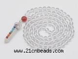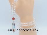 Details: Hand-knotted quartz mala necklaces: 108 8mm/10mm round white crystal beads with 1 12mm red agate guru bead and white crystal pendant (you can choose different pendants) Item: GMN1455 Material: No.1(8mm: 108 8mm white crystal beads, 12mm red agate guru bead & white crystal pendant No.2(10mm: 108 10mm white crystal beads, 12mm red agate guru bead & white crystal pendant Color: See image Length (inch): Necklace length: No.1(8mm: approx 37 - 40 inches (Not including guru bead & pendant) No.2(10mm: approx 46 - 50 inches (Not including guru bead & pendant) Pendants: #1 - #8: approx 20*50mm – 22*55mm #9 - #23: approx 16*50mm – 16*55mm #24 - #30: approx 17*55mm – 17*58mm #31 - #39: approx 25*68mm – 25*70mm Quantity Discount Pricing: 1 – 4: None 5 – 49: 95% 50 – 99: 90% 100+: 85% This mala is available in both 8mm and 10mm beads, The listed price is for 1 piece 8mm mala necklace Each necklaces is handmade and hand-knotted with different gemstones. Please be aware that each necklace varies in stone pattern and color - Making it a truly one-of-a-kind, unique piece of jewelry. Custom orders are available upon request! If you see different stones you like/want incorporated into a mala necklace or you have any need, please contact us before you placing order or leave remark, and we will be happy to create a mala just for you! Mala necklace is worn on the neck or wrist while not in use. It may also serve as a nice accessory in everyday life or on some special occasions. Whether as a calming meditation guide or a beautiful, this necklace will be a great addition to your spiritual practice.
