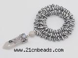 Details: Hand-knotted agate mala necklaces: 108 8mm/10mm faceted round Tibetan agate beads with 1 12mm white crazy lace agate agate guru bead and white crystal pendant (you can choose different pendants) Item: GMN1518 Material: No.1(8mm: 108 8mm faceted Tibetan agate beads, 12mm white crazy lace agate guru bead & white crystal pendant No.2(10mm: 108 10mm faceted Tibetan agate beads, 12mm white crazy lace agate guru bead & white crystal pendant Color: See image Length (inch): Necklace length: No.1(8mm: approx 37 - 40 inches (Not including guru bead & pendant) No.2(10mm: approx 46 - 50 inches (Not including guru bead & pendant) Pendants: #1 - #8: approx 20*50mm – 22*55mm #9 - #23: approx 16*50mm – 16*55mm #24 - #30: approx 17*55mm – 17*58mm #31 - #39: approx 25*68mm – 25*70mm Quantity Discount Pricing: 1 – 4: None 5 – 49: 95% 50 – 99: 90% 100+: 85% This mala is available in both 8mm and 10mm beads, The listed price is for 1 piece 8mm mala necklace Each necklaces is handmade and hand-knotted with different gemstones. Please be aware that each necklace varies in stone pattern and color - Making it a truly one-of-a-kind, unique piece of jewelry. Custom orders are available upon request! If you see different stones you like/want incorporated into a mala necklace or you have any need, please contact us before you placing order or leave remark, and we will be happy to create a mala just for you! Mala necklace is worn on the neck or wrist while not in use. It may also serve as a nice accessory in everyday life or on some special occasions. Whether as a calming meditation guide or a beautiful, this necklace will be a great addition to your spiritual practice.