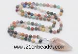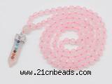 Details: Hand-knotted quartz mala necklaces: 108 8mm/10mm round rose quartz beads with 1 12mm guru bead and rose quartz pendant (you can choose different pendants) Item: GMN1544 Material: No.1(8mm: 108 8mm rose quartz beads, 12mm guru bead & amethyst pendant No.2(10mm: 108 10mm rose quartz beads, 12mm guru bead & amethyst pendant Color: See image Length (inch): Necklace length: No.1(8mm: approx 37 - 40 inches (Not including guru bead & pendant) No.2(10mm: approx 46 - 50 inches (Not including guru bead & pendant) Pendants: #1 - #8: approx 20*50mm – 22*55mm #9 - #23: approx 16*50mm – 16*55mm #24 - #30: approx 17*55mm – 17*58mm #31 - #39: approx 25*68mm – 25*70mm Quantity Discount Pricing: 1 – 4: None 5 – 49: 95% 50 – 99: 90% 100+: 85% This mala is available in both 8mm and 10mm beads, The listed price is for 1 piece 8mm mala necklace Each necklaces is handmade and hand-knotted with different gemstones. Please be aware that each necklace varies in stone pattern and color - Making it a truly one-of-a-kind, unique piece of jewelry. Custom orders are available upon request! If you see different stones you like/want incorporated into a mala necklace or you have any need, please contact us before you placing order or leave remark, and we will be happy to create a mala just for you! Mala necklace is worn on the neck or wrist while not in use. It may also serve as a nice accessory in everyday life or on some special occasions. Whether as a calming meditation guide or a beautiful, this necklace will be a great addition to your spiritual practice.