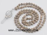 Details: Hand-knotted feldspar mala necklaces: 108 8mm/10mm round feldspar gemstone beads with 1 12mm guru bead and opalite & white crystal pendant (you can choose different pendants) Item: GMN1557 Material: No.1(8mm: 108 8mm Chinese pink opal beads, 12mm guru bead And opalite & white crystal pendant No.2(10mm: 108 10mm Chinese pink opal beads, 12mm guru bead And opalite & white crystal pendant Color: See image Length (inch): Necklace length: No.1(8mm: approx 37 - 40 inches (Not including guru bead & pendant) No.2(10mm: approx 46 - 50 inches (Not including guru bead & pendant) Pendants: #1 - #8: approx 20*50mm – 22*55mm #9 - #23: approx 16*50mm – 16*55mm #24 - #30: approx 17*55mm – 17*58mm #31 - #39: approx 25*68mm – 25*70mm Quantity Discount Pricing: 1 – 4: None 5 – 49: 95% 50 – 99: 90% 100+: 85% This mala is available in both 8mm and 10mm beads, The listed price is for 1 piece 8mm mala necklace Each necklaces is handmade and hand-knotted with different gemstones. Please be aware that each necklace varies in stone pattern and color - Making it a truly one-of-a-kind, unique piece of jewelry. Custom orders are available upon request! If you see different stones you like/want incorporated into a mala necklace or you have any need, please contact us before you placing order or leave remark, and we will be happy to create a mala just for you! Mala necklace is worn on the neck or wrist while not in use. It may also serve as a nice accessory in everyday life or on some special occasions. Whether as a calming meditation guide or a beautiful, this necklace will be a great addition to your spiritual practice.