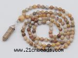 Details: Hand-knotted agate mala necklaces: 108 6mm round yellow crazy lace agate beads with 1 10mm guru bead and picture jasper pendant (you can choose different pendants) Item: GMN1602 Material: yellow crazy lace agate & picture jasper pendant Color: See image Length (inch): Necklace length: approx 28 - 31 inches(Not including guru bead & pendant) Pendants: approx 12*38mm - 12*40mm Quantity Discount Pricing: 1 – 4: None 5 – 49: 95% 50 – 99: 90% 100+: 85% The listed price is for 1 piece necklace Each necklaces is handmade and hand-knotted with different gemstones. Please be aware that each necklace varies in stone pattern and color - Making it a truly one-of-a-kind, unique piece of jewelry. Custom orders are available upon request! If you see different stones you like/want incorporated into a mala necklace or you have any need, please contact us before you placing order or leave remark, and we will be happy to create a mala just for you! Mala necklace is worn on the neck or wrist while not in use. It may also serve as a nice accessory in everyday life or on some special occasions. Whether as a calming meditation guide or a beautiful, this necklace will be a great addition to your spiritual practice.