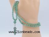 Details: Hand-knotted aventurine mala necklaces: 6mm round green aventurine gemstone beads with 1 10mm guru bead and green aventurine pendant (you can choose different pendants) Item: GMN1648 Material: Green aventurine & green aventurine pendant Color: See image Length (inch): Necklace length: approx 28 - 31 inches(Not including guru bead & pendant) Pendants: approx 12*38mm - 12*40mm Quantity Discount Pricing: 1 – 4: None 5 – 49: 95% 50 – 99: 90% 100+: 85% The listed price is for 1 piece mala necklace Each necklaces is handmade and hand-knotted with different gemstones. Please be aware that each necklace varies in stone pattern and color - Making it a truly one-of-a-kind, unique piece of jewelry. Custom orders are available upon request! If you see different stones you like/want incorporated into a mala necklace or you have any need, please contact us before you placing order or leave remark, and we will be happy to create a mala just for you! Mala necklace is worn on the neck or wrist while not in use. It may also serve as a nice accessory in everyday life or on some special occasions. Whether as a calming meditation guide or a beautiful, this necklace will be a great addition to your spiritual practice.