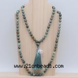 Details: Hand-knotted turquoise mala necklaces: 108 8mm/10mm round African turquoise beads with 1 12mm guru bead and satin tassel & alloy charm (you can choose different tassels & charms) Item: GMN1792 Material: No.1(8mm: 108 8mm African turquoise, 12mm guru bead, satin tassel & charm No.2(10mm: 108 10mm African turquoise, 12mm guru bead, satin tassel & charm Color: See image Length (inch): Necklace length: No.1(8mm: approx 37 - 40 inches (Not including guru bead & charm) No.2(10mm: approx 46 - 50 inches (Not including guru bead & charm) Quantity Discount Pricing: 1 – 4: None 5 – 49: 95% 50 – 99: 90% 100+: 85% This mala is available in both 8mm and 10mm beads, The listed price is for 1 piece 8mm mala necklace Each necklaces is handmade and hand-knotted with different gemstones. Please be aware that each necklace varies in stone pattern and color - Making it a truly one-of-a-kind, unique piece of jewelry. Custom orders are available upon request! If you see different stones you like/want incorporated into a mala necklace or you have any need, please contact us before you placing order or leave remark, and we will be happy to create a mala just for you! Mala necklace is worn on the neck or wrist while not in use. It may also serve as a nice accessory in everyday life or on some special occasions. Whether as a calming meditation guide or a beautiful, this necklace will be a great addition to your spiritual practice.
