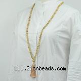 Details: Hand-knotted tiger eye mala necklaces: 108 8mm/10mm round golden tiger eye beads with 1 12mm guru bead and satin tassel & alloy charm (you can choose different tassels & charms) Item: GMN1825 Material: No.1(8mm: 108 8mm golden tiger eye, 12mm guru bead, satin tassel & charm No.2(10mm: 108 10mm golden tiger eye, 12mm guru bead, satin tassel & charm Color: See image Length (inch): Necklace length: No.1(8mm: approx 37 - 40 inches (Not including guru bead & charm) No.2(10mm: approx 46 - 50 inches (Not including guru bead & charm) Quantity Discount Pricing: 1 – 4: None 5 – 49: 95% 50 – 99: 90% 100+: 85% This mala is available in both 8mm and 10mm beads, The listed price is for 1 piece 8mm mala necklace Each necklaces is handmade and hand-knotted with different gemstones. Please be aware that each necklace varies in stone pattern and color - Making it a truly one-of-a-kind, unique piece of jewelry. Custom orders are available upon request! If you see different stones you like/want incorporated into a mala necklace or you have any need, please contact us before you placing order or leave remark, and we will be happy to create a mala just for you! Mala necklace is worn on the neck or wrist while not in use. It may also serve as a nice accessory in everyday life or on some special occasions. Whether as a calming meditation guide or a beautiful, this necklace will be a great addition to your spiritual practice.