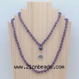 Details: Hand-knotted quartz mala necklaces: 108 6mm round amethyst beads with 1 10mm guru bead and charm (you can choose different charms) Item: GMN2437 Material: amethyst & charm Color: See image Length (inch): Necklace length: approx 28 - 31 inches(Not including guru bead & charm) Quantity Discount Pricing: 1 – 4: None 5 – 49: 95% 50 – 99: 90% 100+: 85% The listed price is for 1 piece necklace Each necklaces is handmade and hand-knotted with different gemstones. Please be aware that each necklace varies in stone pattern and color - Making it a truly one-of-a-kind, unique piece of jewelry. Custom orders are available upon request! If you see different stones you like/want incorporated into a mala necklace or you have any need, please contact us before you placing order or leave remark, and we will be happy to create a mala just for you! Mala necklace is worn on the neck or wrist while not in use. It may also serve as a nice accessory in everyday life or on some special occasions. Whether as a calming meditation guide or a beautiful, this necklace will be a great addition to your spiritual practice.