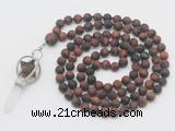 Details: Hand-knotted tiger eye mala necklaces: 108 8mm/10mm round matte red tiger eye gemstone beads with 1 12mm guru bead and white crystal pendant (you can choose different pendants) Item: GMN2631 Material: No.1(8mm: 108 8mm matte red tiger eye beads, 12mm guru bead And yellow tiger eye & white crystal pendant No.2(10mm: 108 10mm matte red tiger eye beads, 12mm guru bead And yellow tiger eye & white crystal pendant Color: See image Length (inch): Necklace length: No.1(8mm: approx 37 - 40 inches (Not including guru bead & pendant) No.2(10mm: approx 46 - 50 inches (Not including guru bead & pendant) Pendants: #1 - #8: approx 20*50mm – 22*55mm #9 - #23: approx 16*50mm – 16*55mm #24 - #30: approx 17*55mm – 17*58mm #31 - #39: approx 25*68mm – 25*70mm Quantity Discount Pricing: 1 – 4: None 5 – 49: 95% 50 – 99: 90% 100+: 85% This mala is available in both 8mm and 10mm beads, The listed price is for 1 piece 8mm mala necklace Each necklaces is handmade and hand-knotted with different gemstones. Please be aware that each necklace varies in stone pattern and color - Making it a truly one-of-a-kind, unique piece of jewelry. Custom orders are available upon request! If you see different stones you like/want incorporated into a mala necklace or you have any need, please contact us before you placing order or leave remark, and we will be happy to create a mala just for you! Mala necklace is worn on the neck or wrist while not in use. It may also serve as a nice accessory in everyday life or on some special occasions. Whether as a calming meditation guide or a beautiful, this necklace will be a great addition to your spiritual practice.