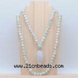 Details: Hand-knotted agate mala necklaces: 108 8mm/10mm round sea blue banded agate beads with agate pendant/12mm guru bead and agate pendant (you can choose different pendants, but there will be tiny different in shape & color, we will make the jewelry randomly according to our stock) Item: GMN4009 Material: No.1: 8mm: 108 8mm sea blue banded agate beads & agate pendant 10mm: 108 10mm sea blue banded agate beads & agate pendant No.2: 8mm: 108 8mm sea blue banded agate beads, 12mm guru bead & agate pendant 10mm: 108 10mm sea blue banded agate beads, 12mm guru bead & agate pendant Color: See image Length (inch): Necklace length: 8mm: approx 37 - 40 inches (Not including guru bead & pendant) 10mm: approx 46 - 50 inches (Not including guru bead & pendant) Pendants: approx 18*50mm – 25*60mm Quantity Discount Pricing: 1 – 4: None 5 – 49: 95% 50 – 99: 90% 100+: 85% This mala is available in both 8mm and 10mm beads, The listed price is for 1 piece 8mm mala necklace Each necklaces is handmade and hand-knotted with different gemstones. Please be aware that each necklace varies in stone pattern and color - Making it a truly one-of-a-kind, unique piece of jewelry. Custom orders are available upon request! If you see different stones you like/want incorporated into a mala necklace or you have any need, please contact us before you placing order or leave remark, and we will be happy to create a mala just for you! Mala necklace is worn on the neck or wrist while not in use. It may also serve as a nice accessory in everyday life or on some special occasions. Whether as a calming meditation guide or a beautiful, this necklace will be a great addition to your spiritual practice.
