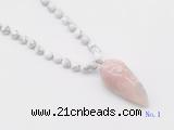 Details: Hand-knotted howlite mala necklaces: 108 8mm/10mm round white howlite beads with sakura agate pendant/12mm guru bead and sakura agate pendant (you can choose different pendants, but there will be tiny different in shape & color, we will make the jewelry randomly according to our stock) Item: GMN4096 Material: No.1: 8mm: 108 8mm white howlite beads & sakura agate pendant 10mm: 108 10mm white howlite beads & sakura agate pendant No.2: 8mm: 108 8mm white howlite beads, 12mm guru bead & sakura agate pendant 10mm: 108 10mm white howlite beads, 12mm guru bead & sakura agate pendant Color: See image Length (inch): Necklace length: 8mm: approx 37 - 40 inches (Not including guru bead & pendant) 10mm: approx 46 - 50 inches (Not including guru bead & pendant) Pendants: approx 18*50mm - 25*60mm Quantity Discount Pricing: 1 – 4: None 5 – 49: 95% 50 – 99: 90% 100+: 85% This mala is available in both 8mm and 10mm beads, The listed price is for 1 piece 8mm mala necklace Each necklaces is handmade and hand-knotted with different gemstones. Please be aware that each necklace varies in stone pattern and color - Making it a truly one-of-a-kind, unique piece of jewelry. Custom orders are available upon request! If you see different stones you like/want incorporated into a mala necklace or you have any need, please contact us before you placing order or leave remark, and we will be happy to create a mala just for you! Mala necklace is worn on the neck or wrist while not in use. It may also serve as a nice accessory in everyday life or on some special occasions. Whether as a calming meditation guide or a beautiful, this necklace will be a great addition to your spiritual practice.