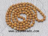 Details: Hand-knotted jasper mala necklaces: 8mm/10mm round wooden jasper gemstone beaded necklaces Item: GMN445 Material: No.1: 108 8mm wooden jasper beads No.2: 108 10mm wooden jasper beads Color: See image Length (inch): No.1(8mm: approx 38 - 41 inches No.2(10mm: approx 47 - 50 inches Quantity Discount Pricing: 1 – 4: None 5 – 49: 95% 50 – 99: 90% 100+: 85% This mala is available in both 8mm and 10mm beads, The listed price is for 1 piece 8mm mala necklace Each necklaces is handmade and hand-knotted with different gemstones. Please be aware that each necklace varies in stone pattern and color - Making it a truly one-of-a-kind, unique piece of jewelry. Custom orders are available upon request! If you see different stones you like/want incorporated into a mala necklace or you have any need, please contact us before you placing order or leave remark, and we will be happy to create a mala just for you! Mala necklace is worn on the neck or wrist while not in use. It may also serve as a nice accessory in everyday life or on some special occasions. Whether as a calming meditation guide or a beautiful, this necklace will be a great addition to your spiritual practice.