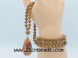 Details: Hand-knotted jasper mala necklaces: 108 8mm/10mm round wooden jasper beads with agate pendant/12mm guru bead and agate pendant (you can choose different pendants, but there will be tiny different in shape & color, we will make the jewelry randomly according to our stock) Item: GMN4623 Material: No.1: 8mm: 108 8mm wooden jasper beads & agate pendant 10mm: 108 10mm wooden jasper beads & agate pendant No.2: 8mm: 108 8mm wooden jasper beads, 12mm guru bead & agate pendant 10mm: 108 10mm wooden jasper beads, 12mm guru bead & agate pendant Color: See image Length (inch): Necklace length: 8mm: approx 37 - 40 inches (Not including guru bead & pendant) 10mm: approx 46 - 50 inches (Not including guru bead & pendant) Pendants: approx 18*50mm – 25*60mm Quantity Discount Pricing: 1 – 4: None 5 – 49: 95% 50 – 99: 90% 100+: 85% This mala is available in both 8mm and 10mm beads, The listed price is for 1 piece 8mm mala necklace Each necklaces is handmade and hand-knotted with different gemstones. Please be aware that each necklace varies in stone pattern and color - Making it a truly one-of-a-kind, unique piece of jewelry. Custom orders are available upon request! If you see different stones you like/want incorporated into a mala necklace or you have any need, please contact us before you placing order or leave remark, and we will be happy to create a mala just for you! Mala necklace is worn on the neck or wrist while not in use. It may also serve as a nice accessory in everyday life or on some special occasions. Whether as a calming meditation guide or a beautiful, this necklace will be a great addition to your spiritual practice.