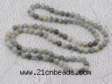 Details: Hand-knotted quartz necklaces: 8mm/10mm round seaweed quartz gemstone beaded necklaces Item: GMN465 Material: No.1: 108 8mm seaweed quartz beads No.2: 108 10mm seaweed quartz beads Color: See image Length (inch): No.1(8mm: approx 38 - 41 inches No.2(10mm: approx 47 - 50 inches Quantity Discount Pricing: 1 – 4: None 5 – 49: 95% 50 – 99: 90% 100+: 85% This mala is available in both 8mm and 10mm beads, The listed price is for 1 piece 8mm mala necklace Each necklaces is handmade and hand-knotted with different gemstones. Please be aware that each necklace varies in stone pattern and color - Making it a truly one-of-a-kind, unique piece of jewelry. Custom orders are available upon request! If you see different stones you like/want incorporated into a mala necklace or you have any need, please contact us before you placing order or leave remark, and we will be happy to create a mala just for you! Mala necklace is worn on the neck or wrist while not in use. It may also serve as a nice accessory in everyday life or on some special occasions. Whether as a calming meditation guide or a beautiful, this necklace will be a great addition to your spiritual practice.