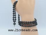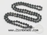Details: Hand-knotted obsidia mala necklaces: 108 8mm/10mm round golden obsidian beads with white crystal pendant/12mm guru bead and white crystal pendant (you can choose different pendants, but there will be tiny different in shape & color, we will make the jewelry randomly according to our stock) Item: GMN4689 Material: No.1: 8mm: 108 8mm golden obsidian beads & white crystal pendant 10mm: 108 10mm golden obsidian beads & white crystal pendant No.2: 8mm: 108 8mm golden obsidian beads, 12mm guru bead & white crystal pendant 10mm: 108 10mm golden obsidian beads, 12mm guru bead & white crystal pendant Color: See image Length (inch): Necklace length: 8mm: approx 37 - 40 inches (Not including guru bead & pendant) 10mm: approx 46 - 50 inches (Not including guru bead & pendant) Quantity Discount Pricing: 1 – 4: None 5 – 49: 95% 50 – 99: 90% 100+: 85% This mala is available in both 8mm and 10mm beads, The listed price is for 1 piece 8mm mala necklace Each necklaces is handmade and hand-knotted with different gemstones. Please be aware that each necklace varies in stone pattern and color - Making it a truly one-of-a-kind, unique piece of jewelry. Custom orders are available upon request! If you see different stones you like/want incorporated into a mala necklace or you have any need, please contact us before you placing order or leave remark, and we will be happy to create a mala just for you! Mala necklace is worn on the neck or wrist while not in use. It may also serve as a nice accessory in everyday life or on some special occasions. Whether as a calming meditation guide or a beautiful, this necklace will be a great addition to your spiritual practice.