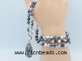 Details: Hand-knotted jasper mala necklaces: 108 8mm/10mm round black & white jasper beads with 1 12mm guru bead and fossil jasper pendant (you can choose different pendants, but there will be tiny different in shape & color, we will make the jewelry randomly according to our stock) Item: GMN4865 Material: 8mm: 108 8mm black & white jasper beads, 12mm guru bead And fossil jasper pendant 10mm: 108 10mm black & white jasper beads, 12mm guru bead And fossil jasper pendant Color: See image Length (inch): Necklace length: 8mm: approx 37 - 40 inches (Not including guru bead & pendant) 10mm: approx 46 - 50 inches (Not including guru bead & pendant) Pendants: approx 18*35mm – 28*40mm Quantity Discount Pricing: 1 – 4: None 5 – 49: 95% 50 – 99: 90% 100+: 85% This mala is available in both 8mm and 10mm beads, The listed price is for 1 piece 8mm mala necklace Each necklaces is handmade and hand-knotted with different gemstones. Please be aware that each necklace varies in stone pattern and color - Making it a truly one-of-a-kind, unique piece of jewelry. Custom orders are available upon request! If you see different stones you like/want incorporated into a mala necklace or you have any need, please contact us before you placing order or leave remark, and we will be happy to create a mala just for you! Mala necklace is worn on the neck or wrist while not in use. It may also serve as a nice accessory in everyday life or on some special occasions. Whether as a calming meditation guide or a beautiful, this necklace will be a great addition to your spiritual practice.