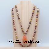 Details: Hand-knotted mookaite mala necklaces: 108 8mm/10mm round mookaite beads with agate pendant (you can choose different pendants, but there will be tiny different in shape & color, we will make the jewelry randomly according to our stock) Item: GMN4890 Material: 8mm: 108 8mm mookaite beads & agate pendant 10mm: 108 10mm mookaite beads & agate pendant Color: See image Length (inch): Necklace length: 8mm: approx 37 - 40 inches (Not including pendant) 10mm: approx 46 - 50 inches (Not including pendant) Pendants: approx 18*35mm – 28*40mm Quantity Discount Pricing: 1 – 4: None 5 – 49: 95% 50 – 99: 90% 100+: 85% This mala is available in both 8mm and 10mm beads, The listed price is for 1 piece 8mm mala necklace Each necklaces is handmade and hand-knotted with different gemstones. Please be aware that each necklace varies in stone pattern and color - Making it a truly one-of-a-kind, unique piece of jewelry. Custom orders are available upon request! If you see different stones you like/want incorporated into a mala necklace or you have any need, please contact us before you placing order or leave remark, and we will be happy to create a mala just for you! Mala necklace is worn on the neck or wrist while not in use. It may also serve as a nice accessory in everyday life or on some special occasions. Whether as a calming meditation guide or a beautiful, this necklace will be a great addition to your spiritual practice.