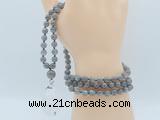 Details: Hand-knotted labradorite mala necklaces: 108 8mm/10mm round grade A labradorite beads with 1 12mm guru bead and black rutilated quartz pendant (you can choose different pendants, but there will be tiny different in shape & color, we will make the jewelry randomly according to our stock) Item: GMN4895 Material: 8mm: 108 8mm labradorite beads, 12mm guru bead & black rutilated quartz pendant 10mm: 108 10mm labradorite beads, 12mm guru bead & black rutilated quartz pendant Color: See image Length (inch): Necklace length: 8mm: approx 37 - 40 inches (Not including guru bead & pendant) 10mm: approx 46 - 50 inches (Not including guru bead & pendant) Pendants: approx 18*35mm – 28*40mm Quantity Discount Pricing: 1 – 4: None 5 – 49: 95% 50 – 99: 90% 100+: 85% This mala is available in both 8mm and 10mm beads, The listed price is for 1 piece 8mm mala necklace Each necklaces is handmade and hand-knotted with different gemstones. Please be aware that each necklace varies in stone pattern and color - Making it a truly one-of-a-kind, unique piece of jewelry. Custom orders are available upon request! If you see different stones you like/want incorporated into a mala necklace or you have any need, please contact us before you placing order or leave remark, and we will be happy to create a mala just for you! Mala necklace is worn on the neck or wrist while not in use. It may also serve as a nice accessory in everyday life or on some special occasions. Whether as a calming meditation guide or a beautiful, this necklace will be a great addition to your spiritual practice.