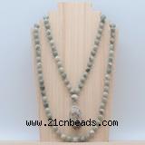 Details: Hand-knotted jasper mala necklaces: 108 8mm/10mm round artistic jasper beads with rainforest agate pendant/12mm guru bead and rainforest agate pendant (you can choose different pendants, but there will be tiny different in shape & color, we will make the jewelry randomly according to our stock) Item: GMN4923 Material: No.1: 8mm: 108 8mm artistic jasper beads & rainforest agate pendant 10mm: 108 10mm artistic jasper beads & rainforest agate pendant No.2: 8mm: 108 8mm artistic jasper beads, 12mm guru bead & rainforest agate pendant 10mm: 108 10mm artistic jasper beads, 12mm guru bead & rainforest agate pendant Color: See image Length (inch): Necklace length: 8mm: approx 37 - 40 inches (Not including guru bead & pendant) 10mm: approx 46 - 50 inches (Not including guru bead & pendant) Pendants: approx 18*35mm - 28*40mm Quantity Discount Pricing: 1 - 4: None 5 - 49: 95% 50 - 99: 90% 100+: 85% This mala is available in both 8mm and 10mm beads, The listed price is for 1 piece 8mm mala necklace Each necklaces is handmade and hand-knotted with different gemstones. Please be aware that each necklace varies in stone pattern and color - Making it a truly one-of-a-kind, unique piece of jewelry. Custom orders are available upon request! If you see different stones you like/want incorporated into a mala necklace or you have any need, please contact us before you placing order or leave remark, and we will be happy to create a mala just for you! Mala necklace is worn on the neck or wrist while not in use. It may also serve as a nice accessory in everyday life or on some special occasions. Whether as a calming meditation guide or a beautiful, this necklace will be a great addition to your spiritual practice.