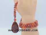 Details: Hand-knotted agate mala necklaces: 108 8mm/10mm round fire agate beads with brecciated jasper pendant/12mm guru bead and brecciated jasper pendant (you can choose different pendants, but there will be tiny different in shape & color, we will make the jewelry randomly according to our stock) Item: GMN5093 Material: No.1: 8mm: 108 8mm fire agate beads & brecciated jasper pendant 10mm: 108 10mm fire agate beads & brecciated jasper pendant No.2: 8mm: 108 8mm fire agate beads, 12mm guru bead & brecciated jasper pendant 10mm: 108 10mm fire agate beads, 12mm guru bead & brecciated jasper pendant Color: See image Length (inch): Necklace length: 8mm: approx 37 - 40 inches (Not including guru bead & pendant) 10mm: approx 46 - 50 inches (Not including guru bead & pendant) Quantity Discount Pricing: 1 - 4: None 5 - 49: 95% 50 - 99: 90% 100+: 85% This mala is available in both 8mm and 10mm beads, The listed price is for 1 piece 8mm mala necklace Each necklaces is handmade and hand-knotted with different gemstones. Please be aware that each necklace varies in stone pattern and color - Making it a truly one-of-a-kind, unique piece of jewelry. Custom orders are available upon request! If you see different stones you like/want incorporated into a mala necklace or you have any need, please contact us before you placing order or leave remark, and we will be happy to create a mala just for you! Mala necklace is worn on the neck or wrist while not in use. It may also serve as a nice accessory in everyday life or on some special occasions. Whether as a calming meditation guide or a beautiful, this necklace will be a great addition to your spiritual practice.