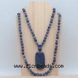 Details: Hand-knotted sodalite mala necklaces: 108 8mm/10mm round matte sodalite beads with lapis lazuli pendant/12mm guru bead and lapis lazuli pendant (you can choose different pendants, but there will be tiny different in shape & color, we will make the jewelry randomly according to our stock) Item: GMN5129 Material: No.1: 8mm: 108 8mm matte sodalite beads & lapis lazuli pendant 10mm: 108 10mm matte sodalite beads & lapis lazuli pendant No.2: 8mm: 108 8mm matte sodalite beads, 12mm guru bead & lapis lazuli pendant 10mm: 108 10mm matte sodalite beads, 12mm guru bead & lapis lazuli pendant Color: See image Length (inch): Necklace length: 8mm: approx 37 - 40 inches (Not including guru bead & pendant) 10mm: approx 46 - 50 inches (Not including guru bead & pendant) Quantity Discount Pricing: 1 – 4: None 5 – 49: 95% 50 – 99: 90% 100+: 85% This mala is available in both 8mm and 10mm beads, The listed price is for 1 piece 8mm mala necklace Each necklaces is handmade and hand-knotted with different gemstones. Please be aware that each necklace varies in stone pattern and color - Making it a truly one-of-a-kind, unique piece of jewelry. Custom orders are available upon request! If you see different stones you like/want incorporated into a mala necklace or you have any need, please contact us before you placing order or leave remark, and we will be happy to create a mala just for you! Mala necklace is worn on the neck or wrist while not in use. It may also serve as a nice accessory in everyday life or on some special occasions. Whether as a calming meditation guide or a beautiful, this necklace will be a great addition to your spiritual practice.