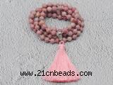Details: Hand-knotted jasper mala necklaces: 108 8mm/10mm round pink wooden fossil jasper beads with 1 10*17mm alloy guru bead and satin tassel (you can choose different colors) Item: GMN601 Material: No.1: 108 8mm pink wooden fossil jasper beads, alloy guru bead & satin tassel No.2: 108 10mm pink wooden fossil jasper beads, alloy guru bead & satin tassel Color: See image Length (inch): Necklace length: No.1(8mm: approx 38 - 41 inches (Not including guru bead & tassel) No.2(10mm: approx 47 - 50 inches (Not including guru bead & tassel) Tassel Lenght: 7cm Quantity Discount Pricing: 1 – 4: None 5 – 49: 95% 50 – 99: 90% 100+: 85% This mala is available in both 8mm and 10mm beads, The listed price is for 1 piece 8mm mala necklace Each necklaces is handmade and hand-knotted with different gemstones. Please be aware that each necklace varies in stone pattern and color - Making it a truly one-of-a-kind, unique piece of jewelry. Custom orders are available upon request! If you see different stones you like/want incorporated into a mala necklace or you have any need, please contact us before you placing order or leave remark, and we will be happy to create a mala just for you! Mala necklace is worn on the neck or wrist while not in use. It may also serve as a nice accessory in everyday life or on some special occasions. Whether as a calming meditation guide or a beautiful, this necklace will be a great addition to your spiritual practice.
